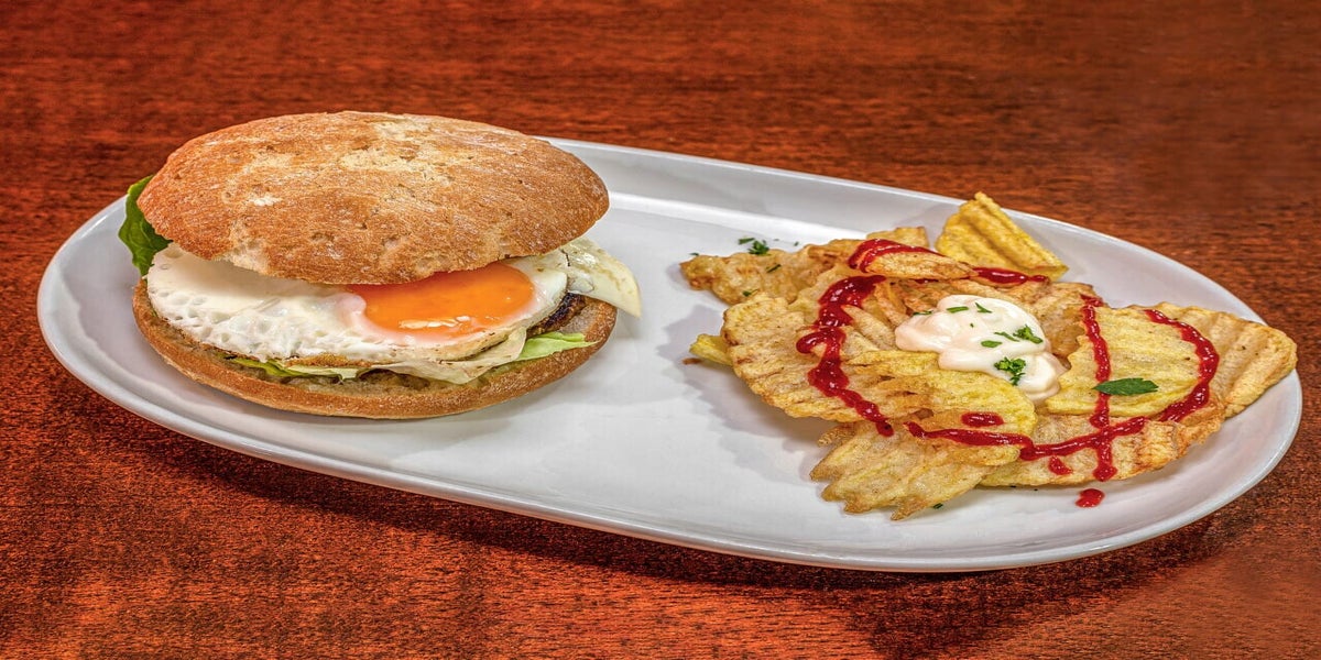| Hamburguesa de carne | Hamburguesa de carne de ternera con queso cheddar, huevo y salsa barbacoa | € 8.80 |